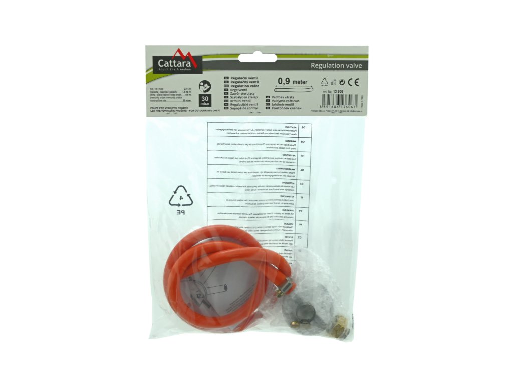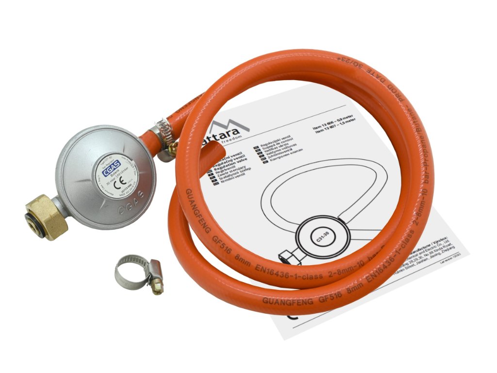 Plynový regulátor tlaku 30mbar EN16129 - sada 0,9m hadice