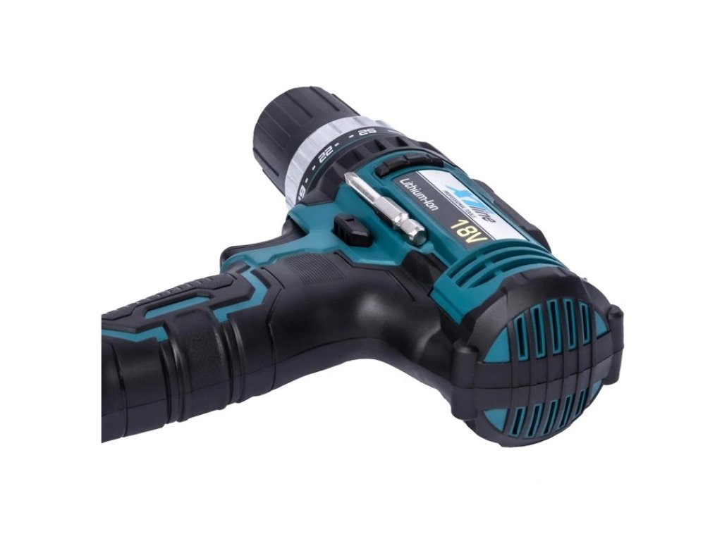 Akumulátorová vrtačka se díky ergonomicky pogumované rukojeti velmi pohodlně drží v ruce. Efektivnější práci ulehčuje motorová brzda, prachotěsná planetová převodovka s kovovými převody a rychloupínací sklíčidlo – snadnější nasazování a vyjímání bitů jednou rukou. Součástí balení je kufr, nabíječka 2.4 A, 2x aku baterie 2.0 Ah, magnetický nástavec na bity, sada vrtáků (2, 2.5, 3, 4, 5, 6 mm) a sada bitů.