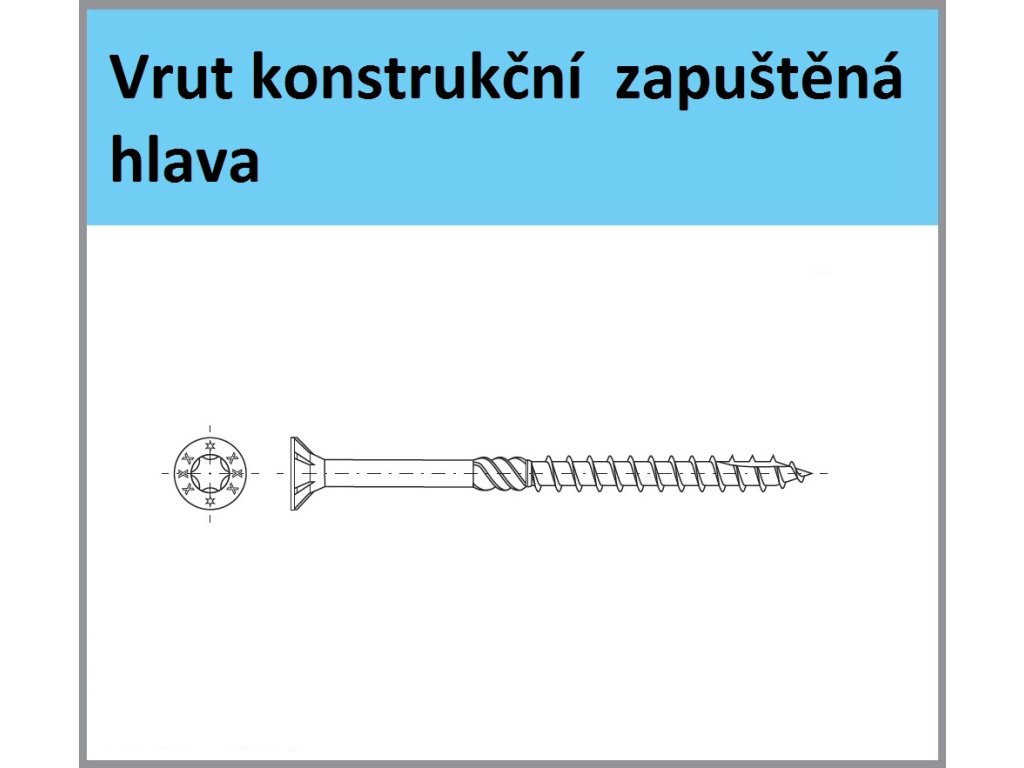 Vrut konstrukční tesařský zapuštěná hlava s torx drážkou 10x260 zinek žlutý
